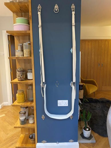 Hydra Yoga is a website that can supply you with all the equipment you need for a professional standard rope wall in your home or studio. They supply ready made panels or you can buy plates and ropes from them and source the oak veneered panels in the UK. Ask a carpenter to route the plates in.